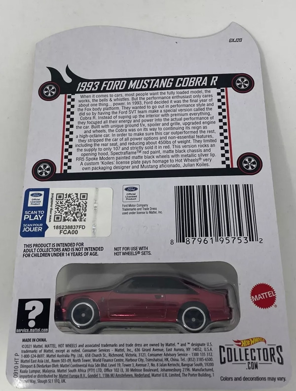 2021 Hot Wheels 1993 Ford Mustang Cobra R diecast information