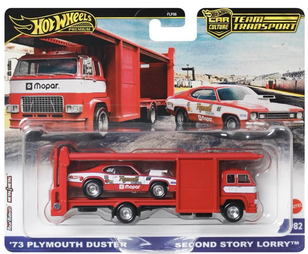 2025 Hot Wheels '73 Plymouth Duster and Second Story Lorry diecast information