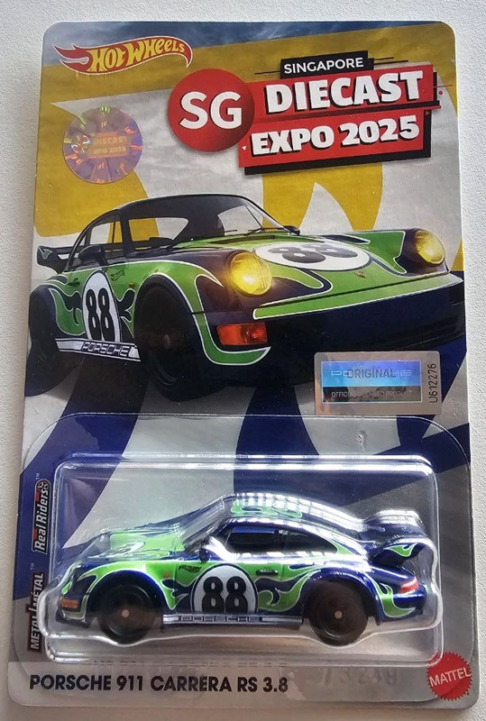 Singaporean Collectors Convention 2025 Porsche 911 Carrera RS 3.8 in Dark Blue and Green, limited to 500 units with HW CON25 on the license plate