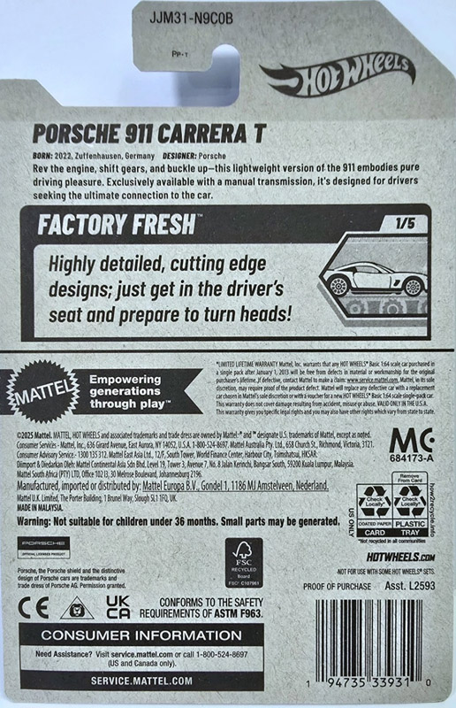 2026 Hot Wheels Porsche 911 Carrera T diecast information